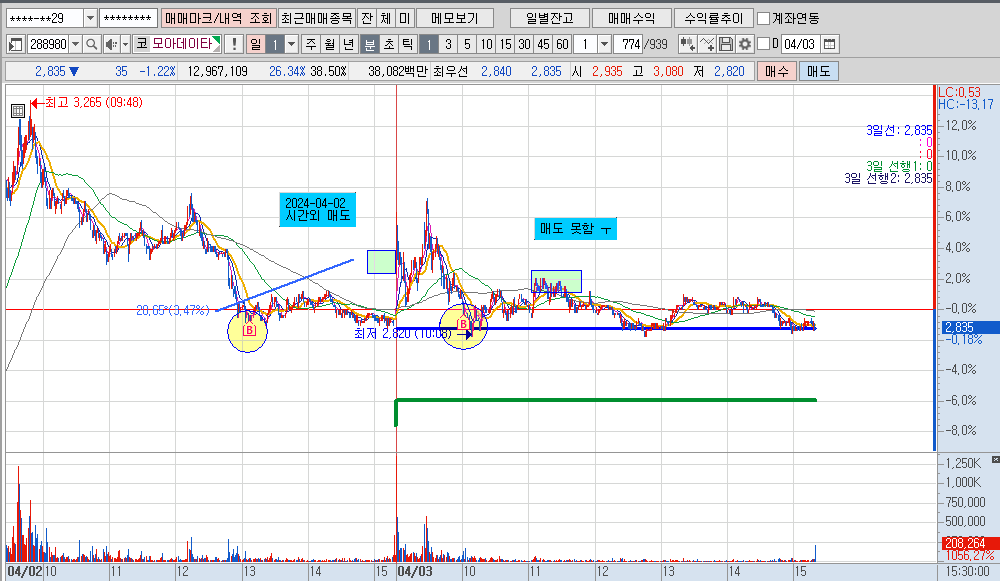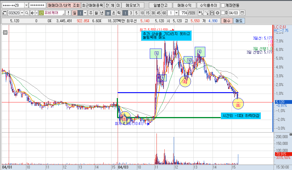 오늘 매매 중에서 제일 아쉬웠던 케이스이고요.