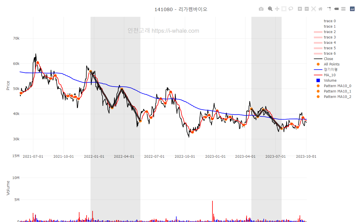 아래의 차트를 보시고 회색으로 이루어진 배경색 & 포인트 별로 검정색 선이 굵게 선이 있는 구간을 잘 살펴보시기를 바랍니다.