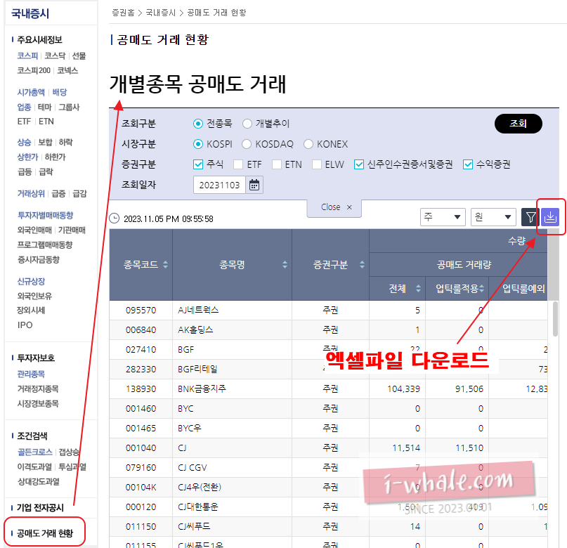 코스피와 코스닥에 상장된 모든 종목별로 공매도 거래량을 확인할 수 있어서 좀 더 편하다고 할 수 있습니다.