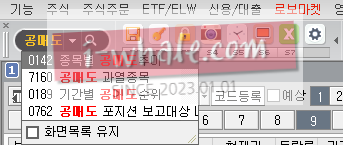 화면 검색 기능을 활용해 보니 키움증권에서는 공매도 관련된 화면이 4개 정도로 보입니다.