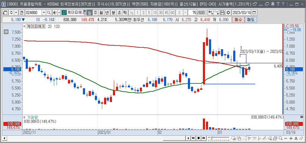 - 기준봉의 중심선은 4,267.50원으로 검은색 가로선으로 표기했으며