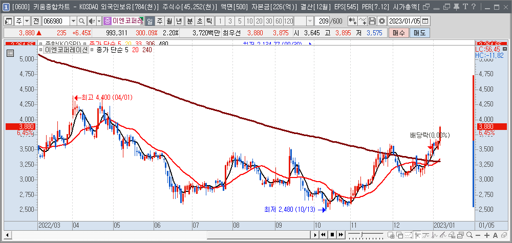 - 2021년 2월 5일 주식회사 제이에스아이컴퍼니 외 2인으로 최대주주가 변경되면서 기업이미지 제고 및 사업다각화를 위해 상호를 이엔코퍼레이션으로 변경함. 초순수 및 폐수, 공업용수, 오폐수 등 수처리설비를 설계, 조달, 시공하는 EPC(설계, 조달, 시공) 전문기업인 한성크린텍을 인수함. 종속회사인 이엔워터솔루션은 폐기물 종합 재활용, 폐기물 중간처분, 폐수수탁, 수탁운반 등 다양한 환경인허가를 보유하고 있음.