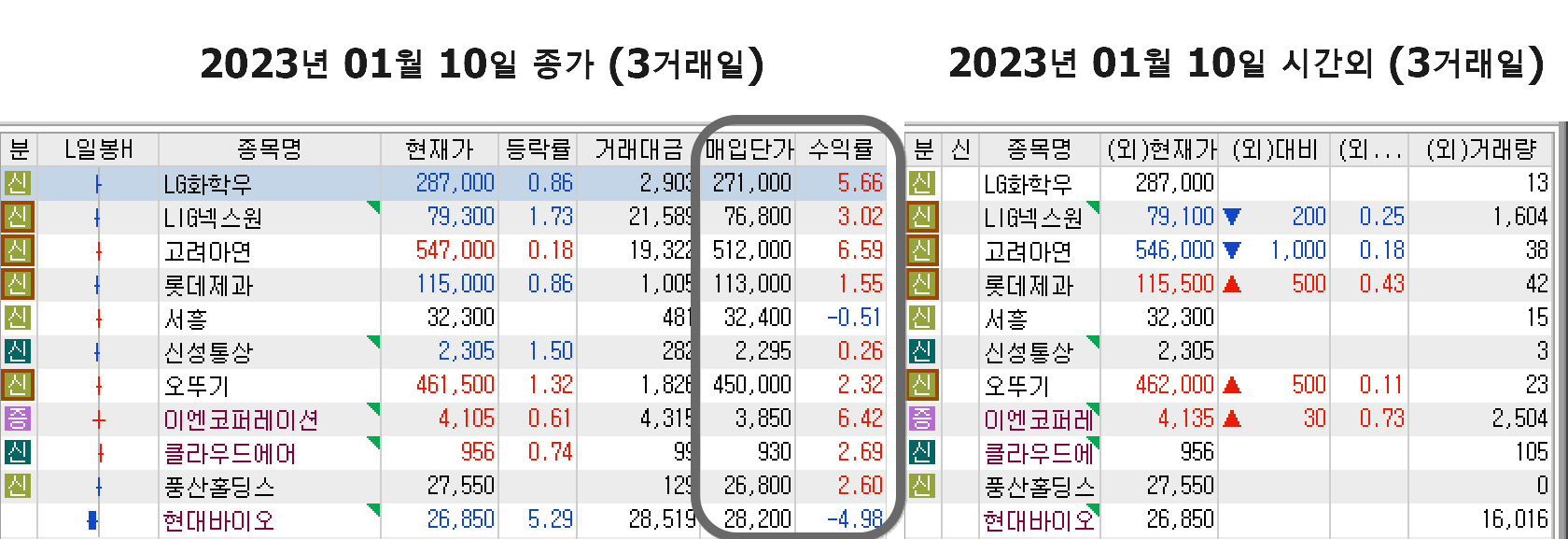 단순하면서도 강력한 매매기법 (상승 예상 종목 - 3일간의 수익률 결과)