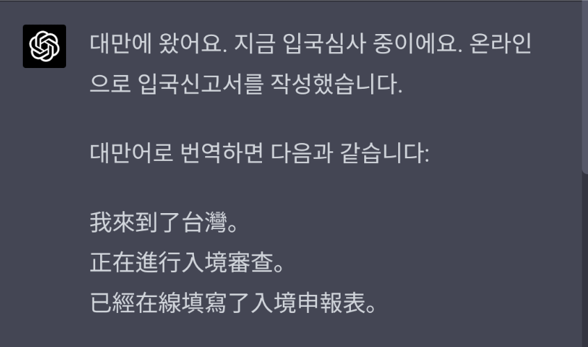 영어도 아니고 중국어도 아니고 대만어를 할 수 없기 때문에