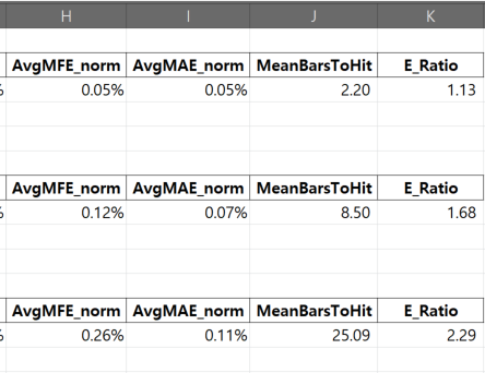 즉, 승률이 1% 오르더라도 기대 손익이 악화될 수 있고, PartialHit이 높아도 MAE(최대 손실 폭)가 급증하면 계좌는 녹아내리게 됩니다.