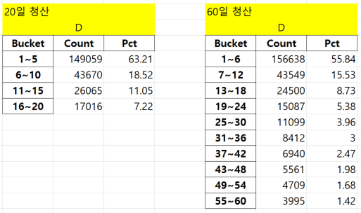 60일을 5일 또는 10일 단위로 분리해서 보는 형식으로 분포(Distribution)를 들여다보는 것이 해답입니다.