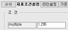 ※ 수식입력이 끝났으면 <지표조건설정> 탭을 선택해서 지표변수명에 Multiple 입력하고 값에는 1.295를 입력해 주세요.