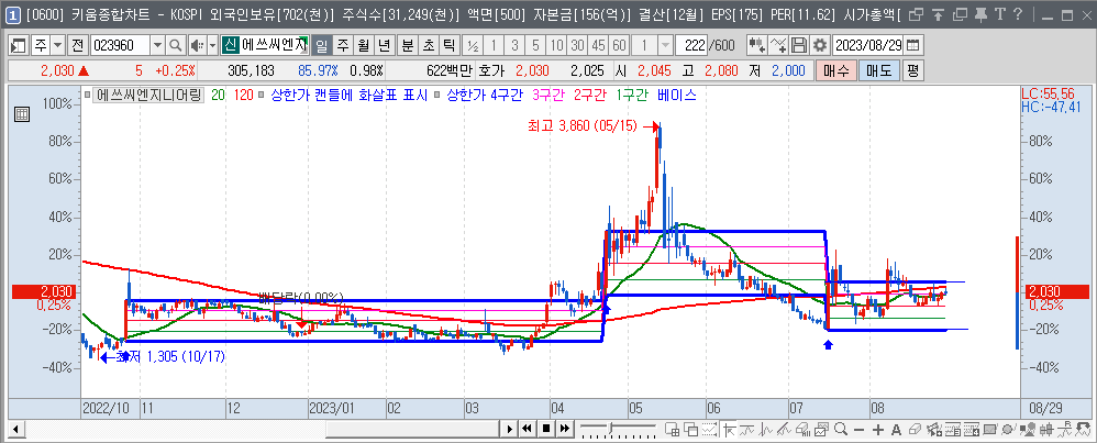 상한가가 발생한 뒤 다음 상한가가 발생하기 전까지 4등분 선이 유효한 형태의 보조지표라고 보시면 됩니다.