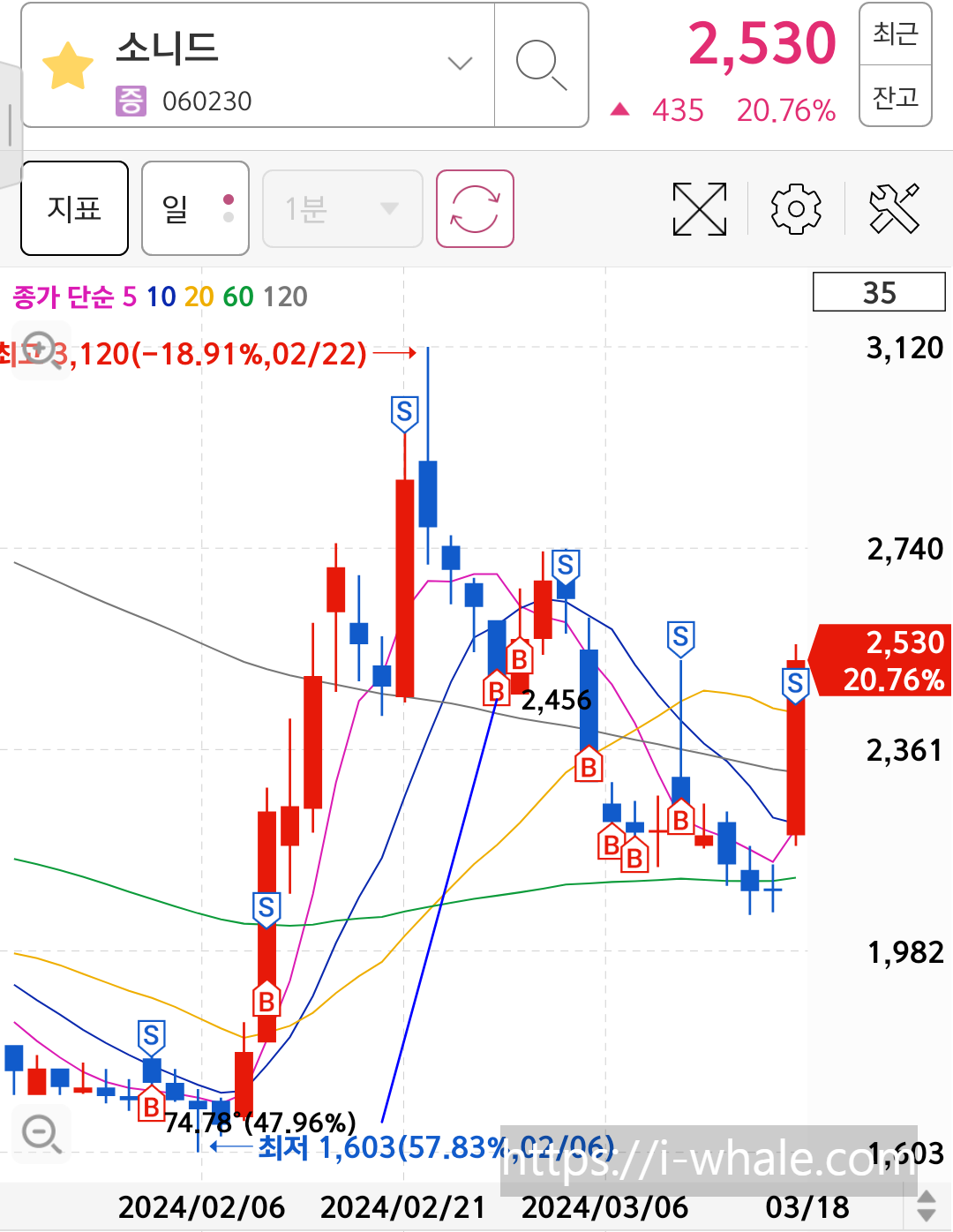 과거에도 말씀을 드렸습니다만 소니드는 저에게는 아주 익숙한 종목이고 뼈를 발라먹는다는 심정으로 매매를 하는 종목이기도 합니다.