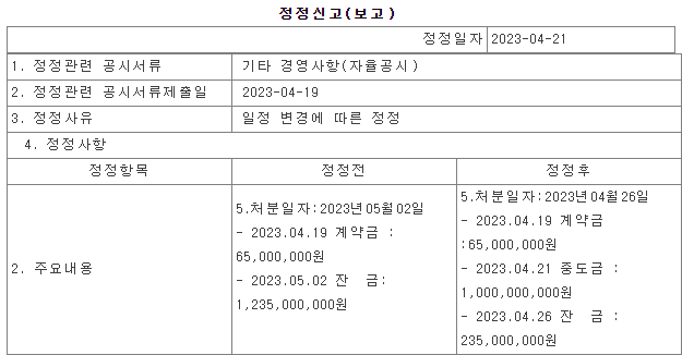 A2. 네, 맞습니다. 공시 내용에 따르면, 중도금 10억 원이 2023년 4월 21일에 소니드 회사에 입금된 상태를 의미합니다.