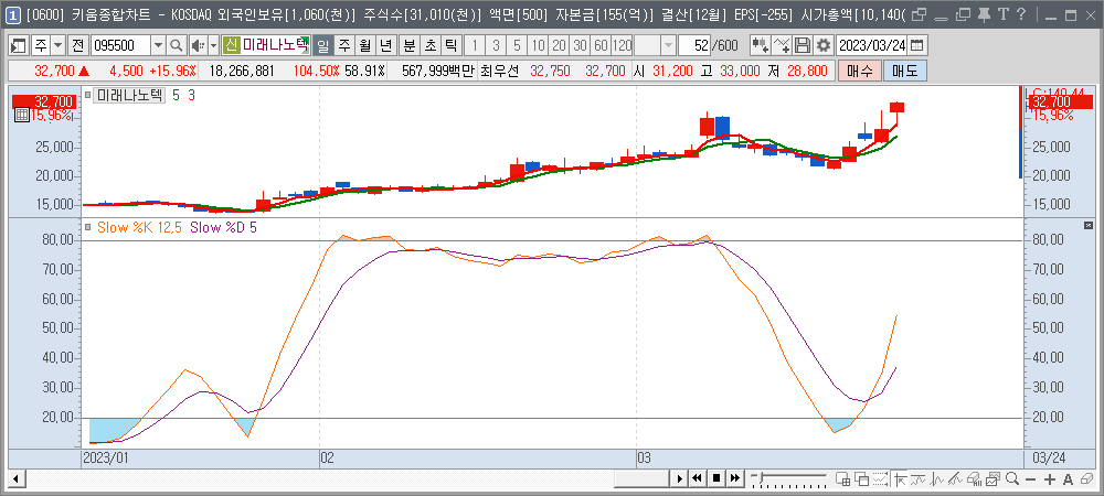 스토캐스틱 1봉전 기준선돌파 차트 모음