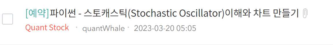 ※ 내일 새벽 5시경에 https://quant.i-whale.com 사이트에 스토캐스틱 차트를 만드는 파이썬 코드를 올릴 예정이오니