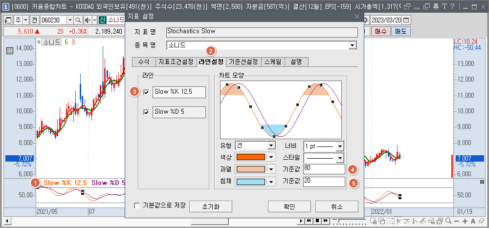 글의 서두에서 말씀드린 바와 같이 키움 HTS는 스토캐스틱의 초기 설정 기간을 14일이 아닌 12일을 사용하고 있으며