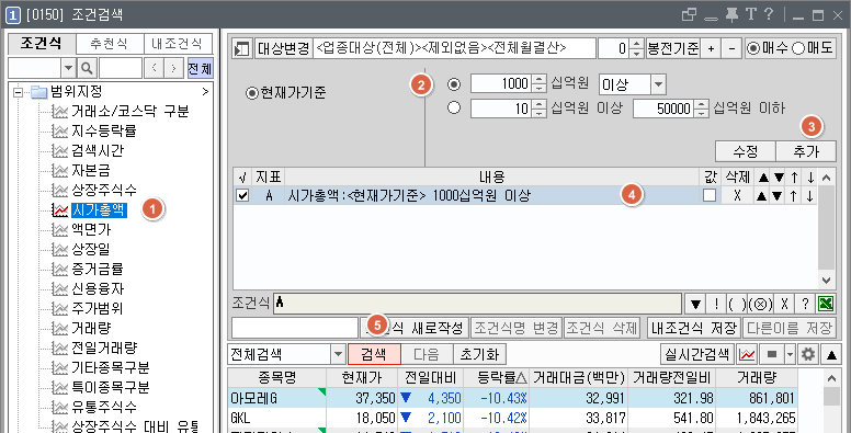 4-2. 시가 총액으로 종목 검색 조건검색식 만들기