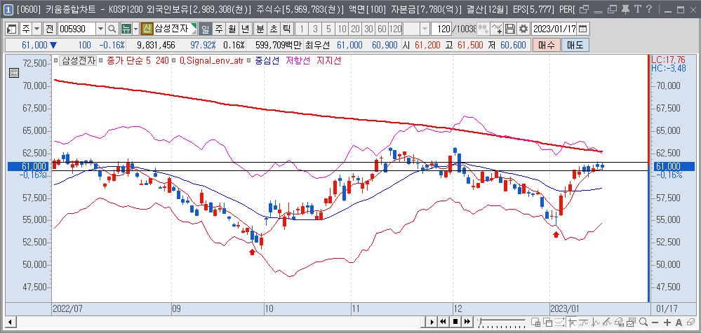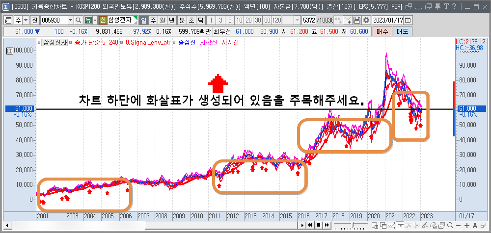 그럼 삼성전자 차트를 하나씩 보면서 결과를 확인해 보도록 하겠습니다.