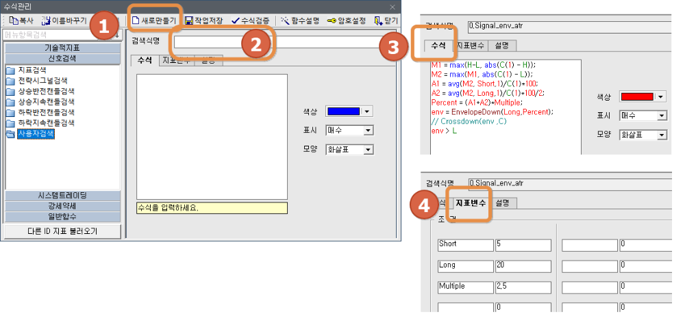 수식관리  > 신호검색 > 사용자 신호 만들기