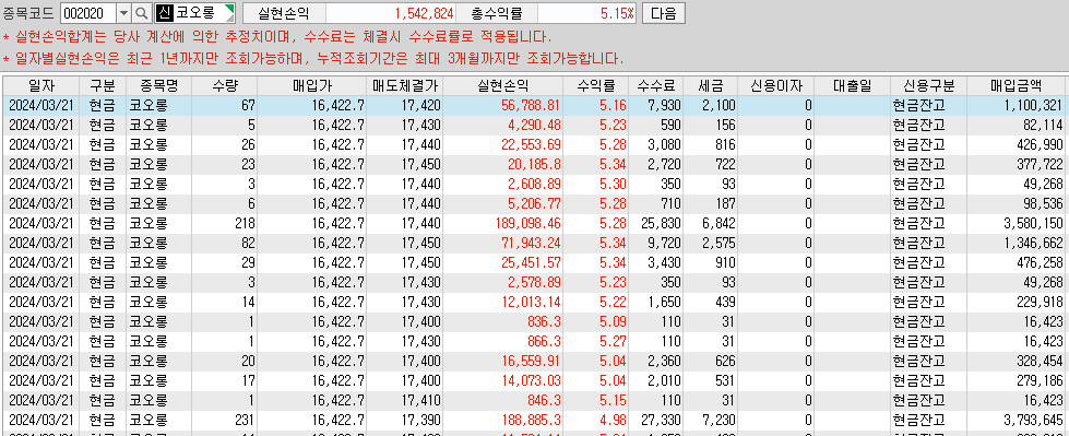위에서 보유종목의 합계가 약 -750만 원 정도 되었었는데 -750만 원을 공제하고서도 3천만 원이 수익이니 자동 매매 프로그램이 정상적으로 잘 동작하는 듯합니다.