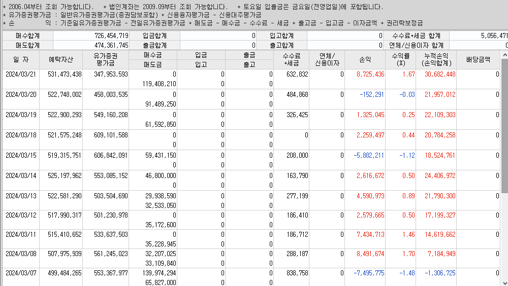 현재 보유되고 있는 종목의 수익률도 중요하지만 보유 종목의 수익률을 내포한 총 누적 수익률이 더 중요하니 보유 중인 수익률은 크게 신경을 안 쓰게 되네요. ^^