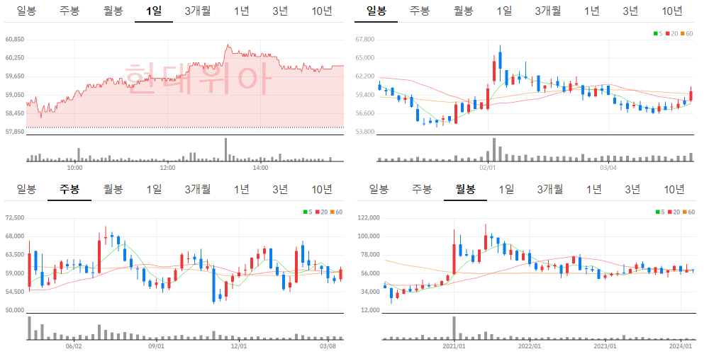 그러고 보니 월봉상에서의 움직임은 아주 미미한 캔드의 움직임으로만 보이네요.