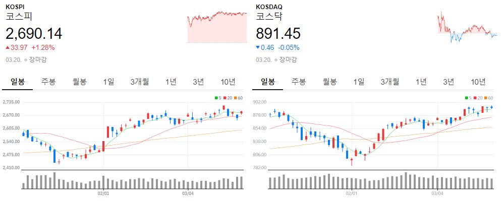 금일은 코스피가 +1.28% 상승 코스닥은 -0.05% 로 조정 마감 했습니다.