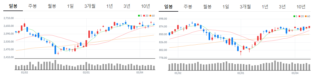 금일은 美엔비디아 급락으로 인해 코스피가 조정을 받은 하루였던 것 같습니다. 그에 비해 코스닥은 잘 버텨주었습니다.