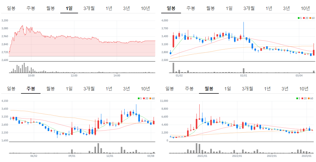 전 거래일(2024-03-08 금요일)에 매수가 되었던 종목이고 지지라인이 무너진 케이스에서 매수가 된 상태라 지지라인 이탈로 발생한 물량이 금일 반등의 주효한 원인 중 하나가 되진 않았나 생각을 해 봅니다.