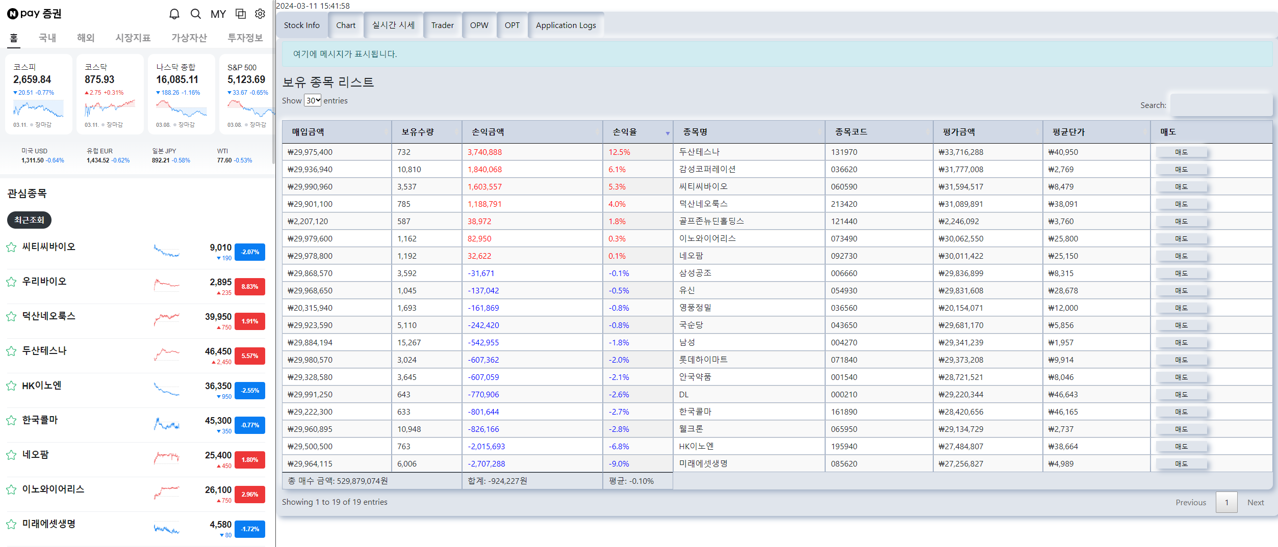 2. 자동매매 프로그램 보유종목 수익률 & 매매 현황