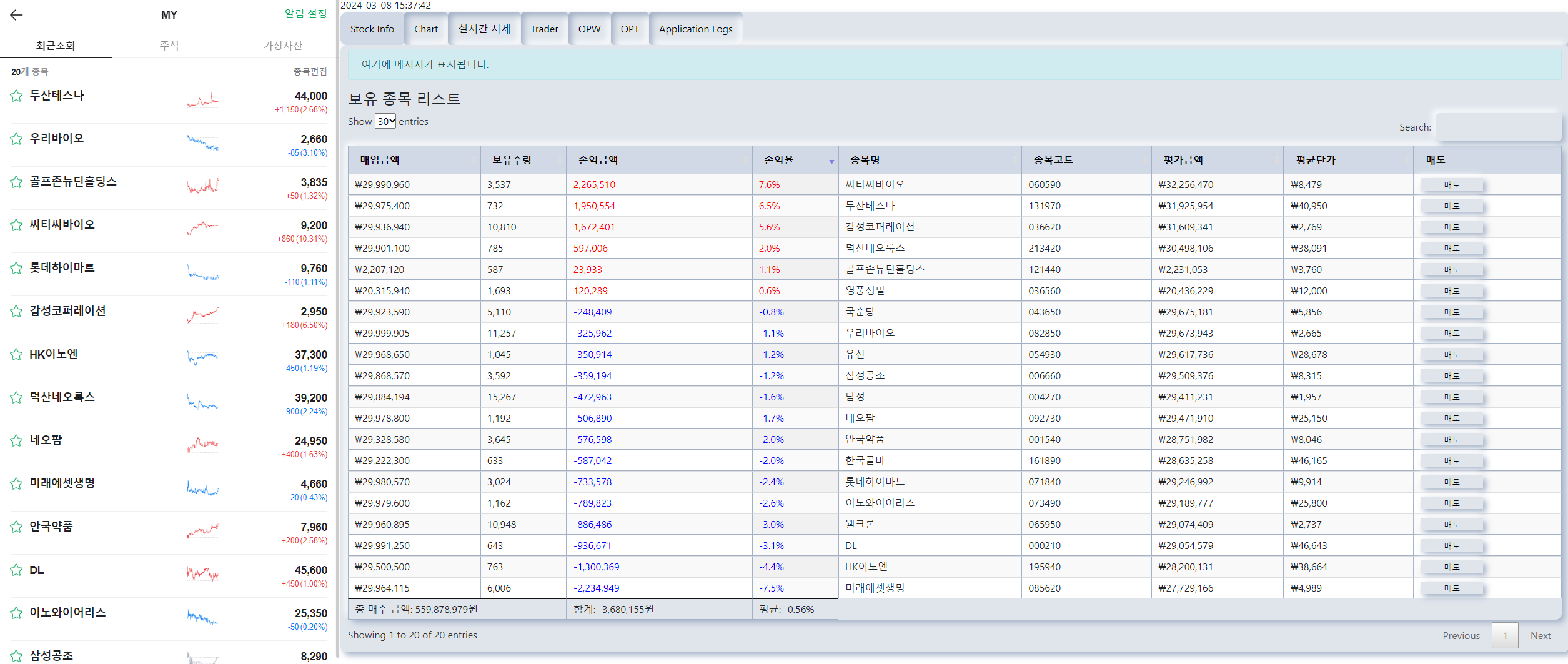 그리고 자동매매 보유 계좌는 지수의 영향을 좀 받아서인지 어제보다 손실폭을 줄였습니다.