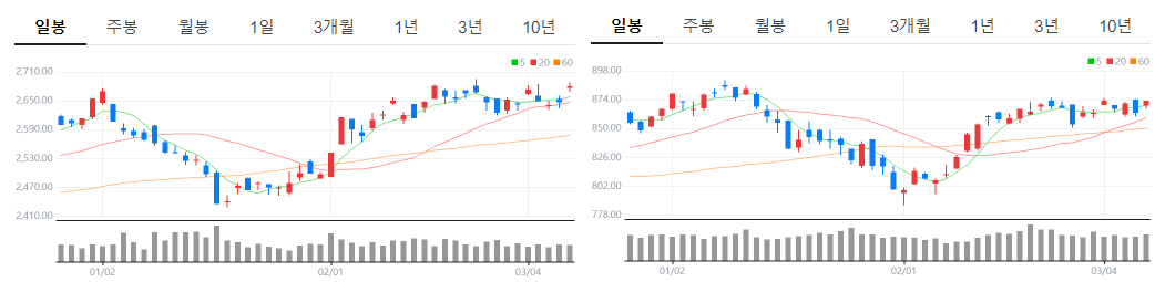 2024-03-08 금요일 코스피 & 코스닥 지수