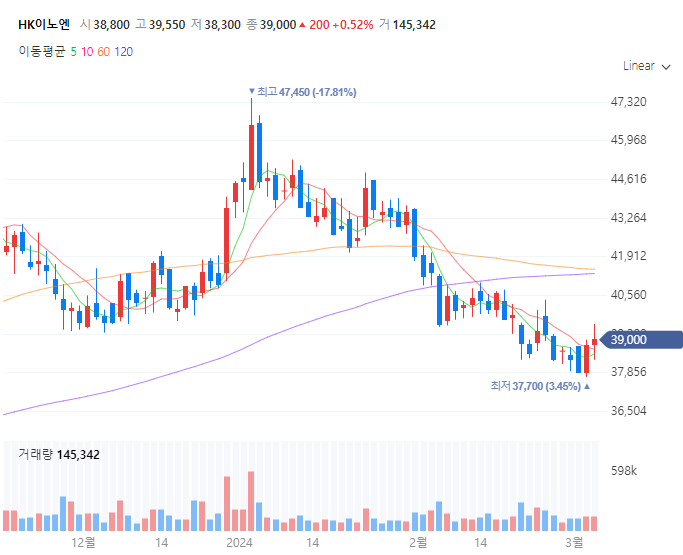 HK이노엔(195940)의 흐름을 한 번 보도록 하겠습니다.