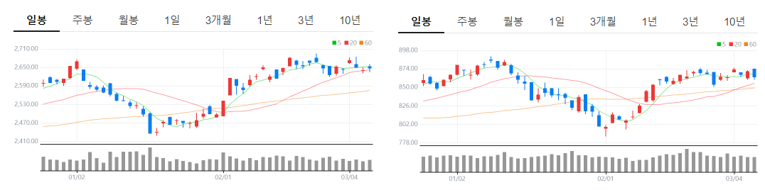 2024-03-07 목요일 코스피 & 코스닥 지수