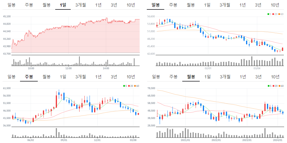 일봉상에서는 5일선 위에서 매수세가 유입이 되며 골드크로스를 한 상태입니다. 약 8일만에 골드크로스를 한 상태인데 20일선까지 상승하는 것을 염두에 둔다면 매수 평단가까지는 상승할 것으로 보입니다.
