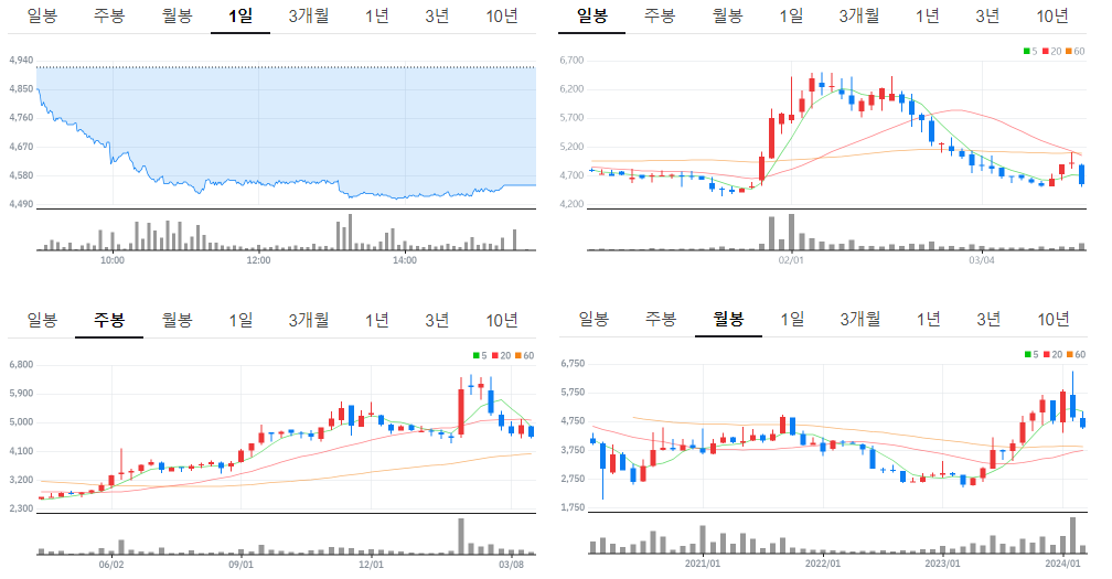 미래에셋생명 종가 차트 2024-03-18 월요일
