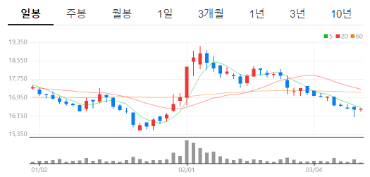 코오롱(002020)은 일봉상 차트로만 보면 2단으로 하락하는 종목으로 보여지는데 10일간 5일선을 타고 지속적인 하락을 하고 있습니다. 어제는 최저점을 찍으면서 아랫꼬리를 달았는데 캔들 패턴으로만 보면 저점에서 발생한 아래꼬리 캔들은 상승반전의 확률이 있는 캔들로 유의미한 캔들이라 익일 이후로 반등 흐름을 기대해 볼만한 종목인 것 같습니다.