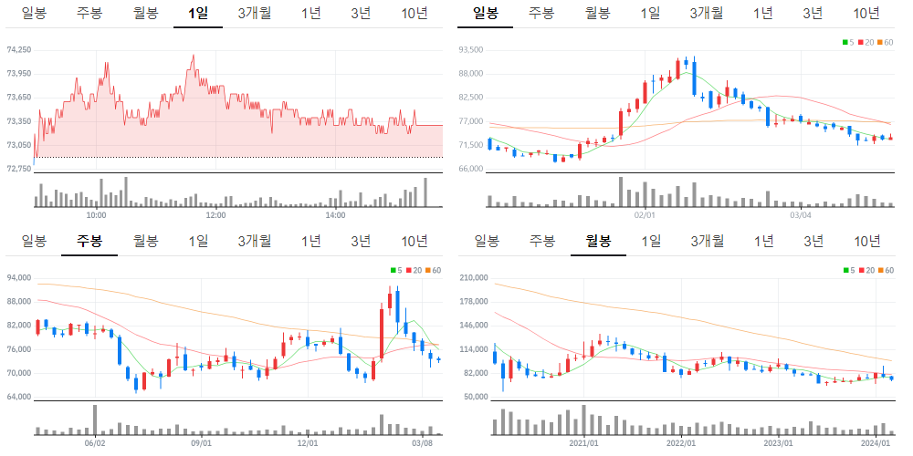 롯데쇼핑 (023530) 종가 차트 2024-03-19 화요일