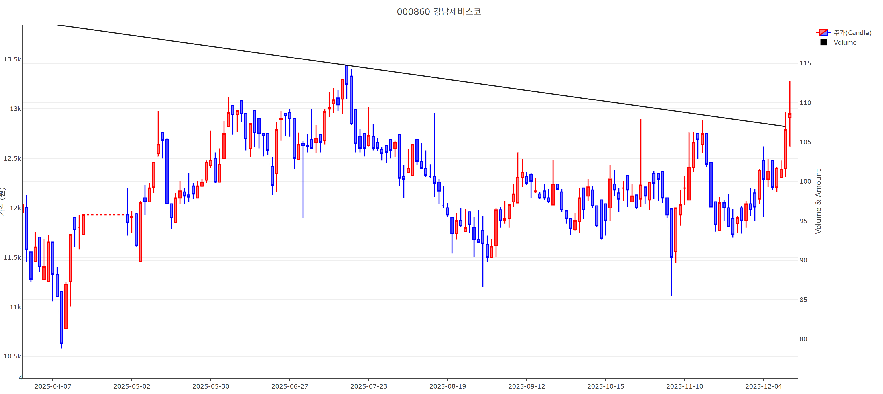 3. 강남제비스코 하락 추세선 이탈 (2025-12-12, 금요일)
