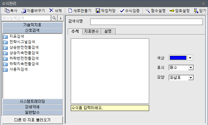 신호검색기는 수식관리자를 통해서 만들 수 있습니다.