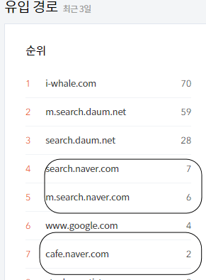 아래는 보잘것없는 제 사이트로의 유입 내역입니다.