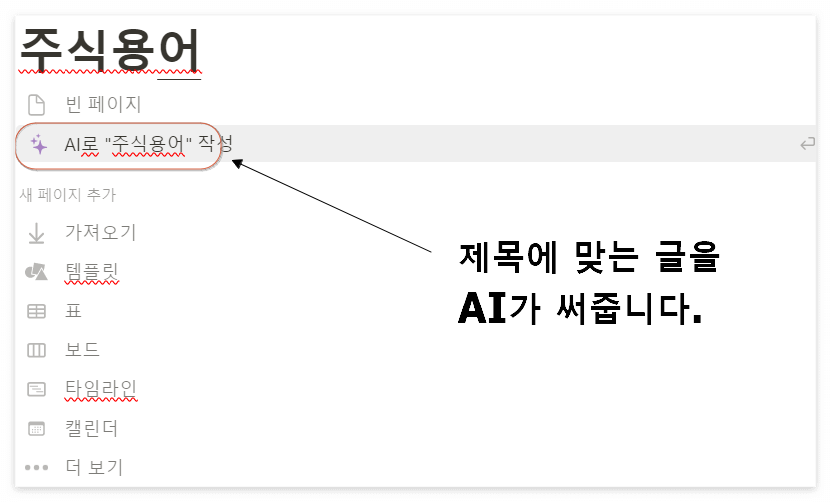 오늘도 글을 쓰기 위해 노션 프로그램을 구동했고 노션에 페이지를 하나 만들어서"주식 용어"라는 제목을 적자마자
