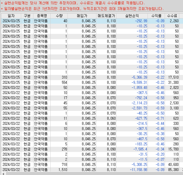* 남성(004270) : 3월 25일 시가 부근에 매도를 걸어두었었는데 전량 체결이 안되어서 잔여 물량만 존재하는데 익일 매도 예정입니다. (현재 -4%정도인데 위의 표에서는 포함 안되어 있습니다.)