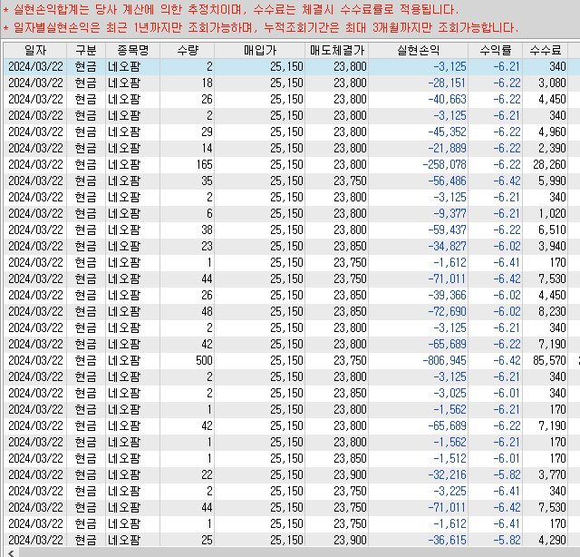 092730 네오팜 강제청산 /  아래 이미지 참조 -6.28% 2024. 3. 22