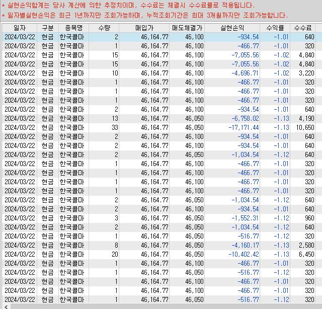 161890 한국콜마 강제청산 /  아래 이미지 참조 -1.06% 2024. 3. 22