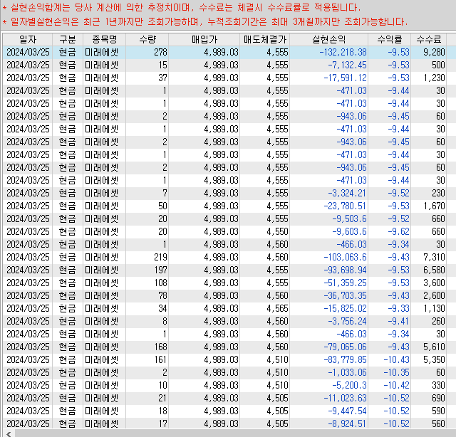 085620 미래에셋생명 강제청산 /  아래 이미지 참조 -9.83% 2024. 3. 25