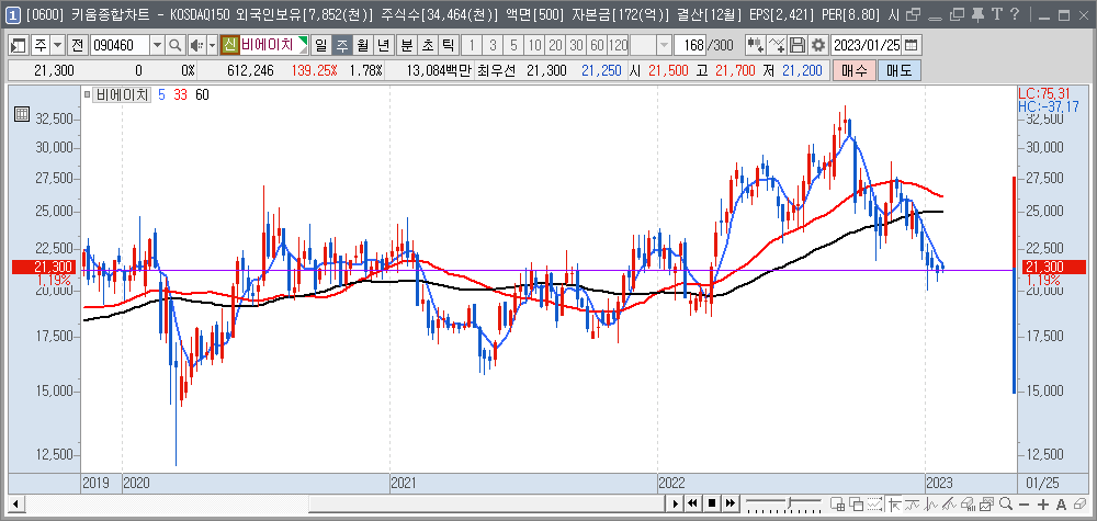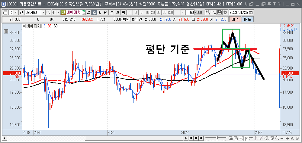 비에이치 (090460)의 차트를 보면서 설명을 드리도록 하겠습니다.
