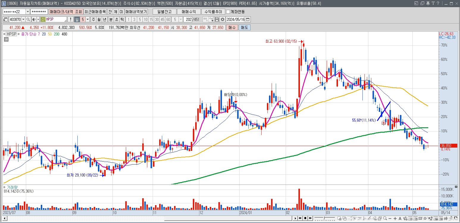 아래의 HPSP 종목 차트를 한 번 보시죠.
