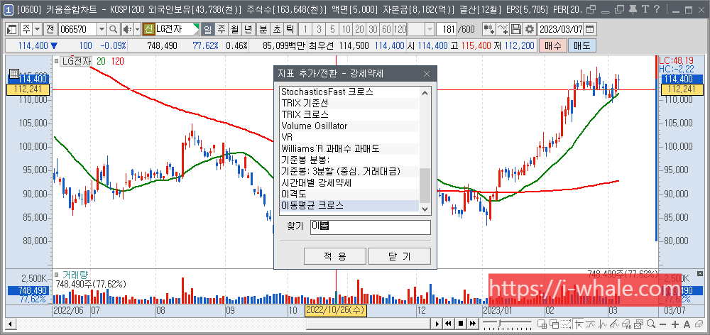 "이동평균 크로스 강세패턴 약세패턴" 지표명을 더블클릭해 주세요.