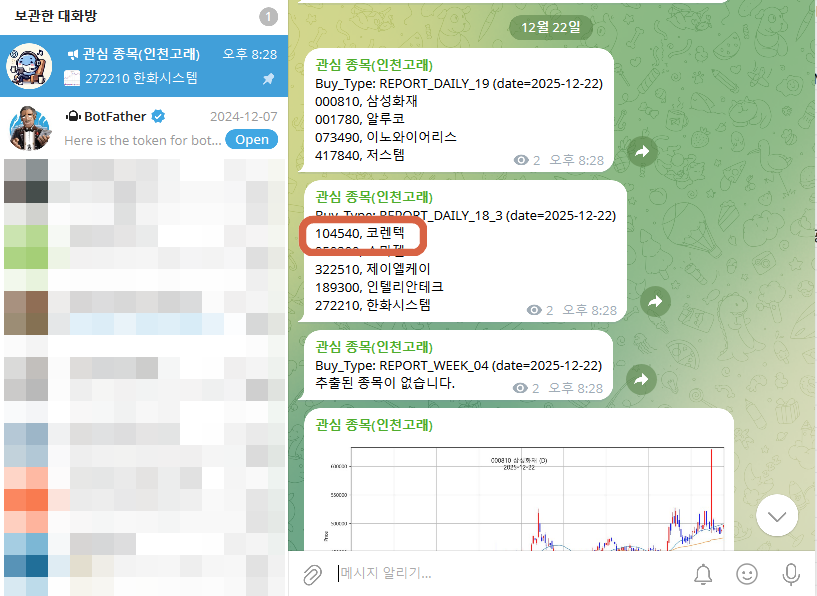 자동 매매 프로그램에서 추출되는 종목을 공유합니다. 매도(수익실현, 손실 확정등)에 대해서는 시그널이 없습니다.)