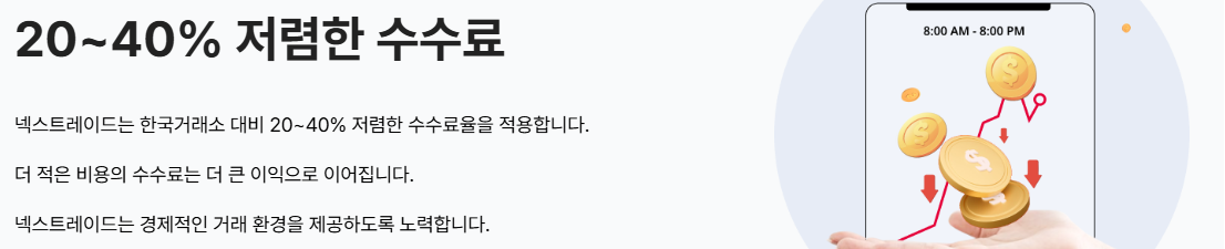 이는 기존 한국거래소의 거래 시간보다 크게 늘어난 것으로, 투자자들에게 더 많은 거래 기회를 제공합니다. - 수수료 절감: 넥스트레이드는 기존 거래소보다 체결 수수료를 20~40% 저렴하게 책정하여 투자자들의 거래 비용을 절감합니다.