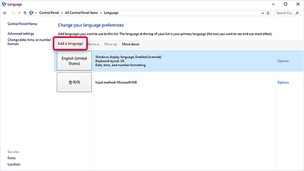 Language(언어) - 5.Language(언어) > Add a language 클릭