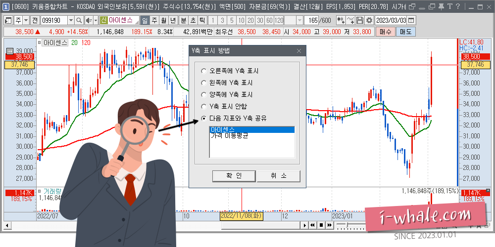 키움 영웅문 Y축 표시방법, Y축 공유